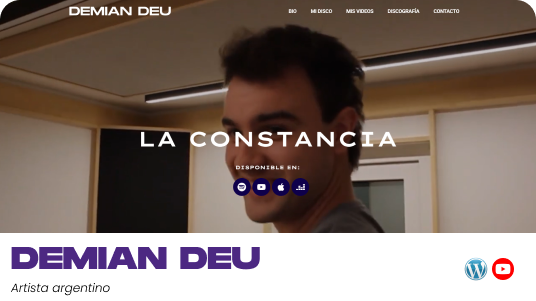 Creamos el sitio web oficial del artista argentino Demian Deu, dise帽ado para reflejar su identidad musical y conectar de manera directa y aut茅ntica con su p煤blico. El sitio contiene:
